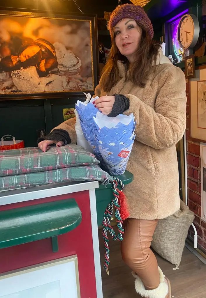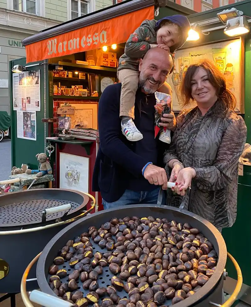 Maronessa führt das Werk und die Familientradition des Maronibratens von Ihrem Vater weiter.